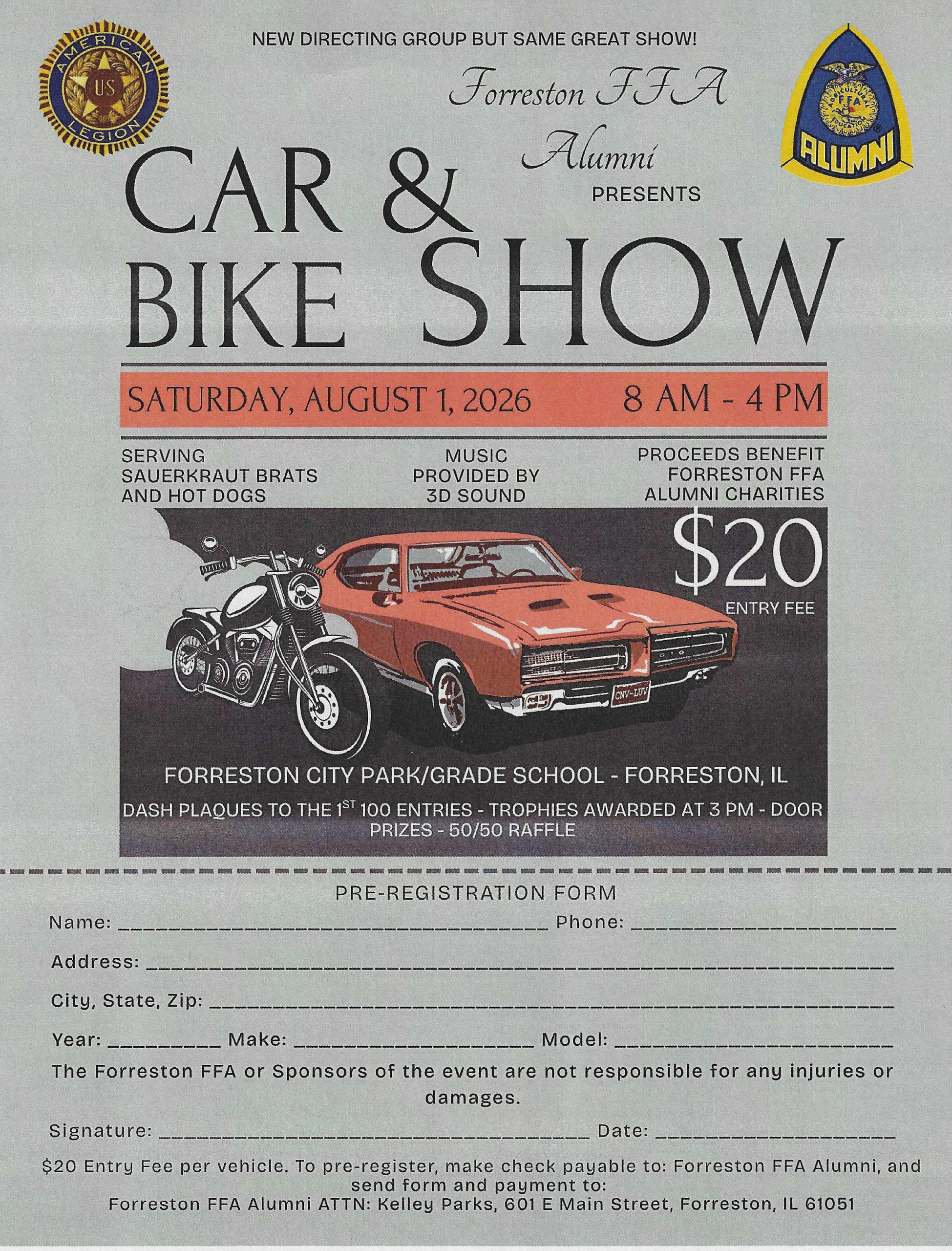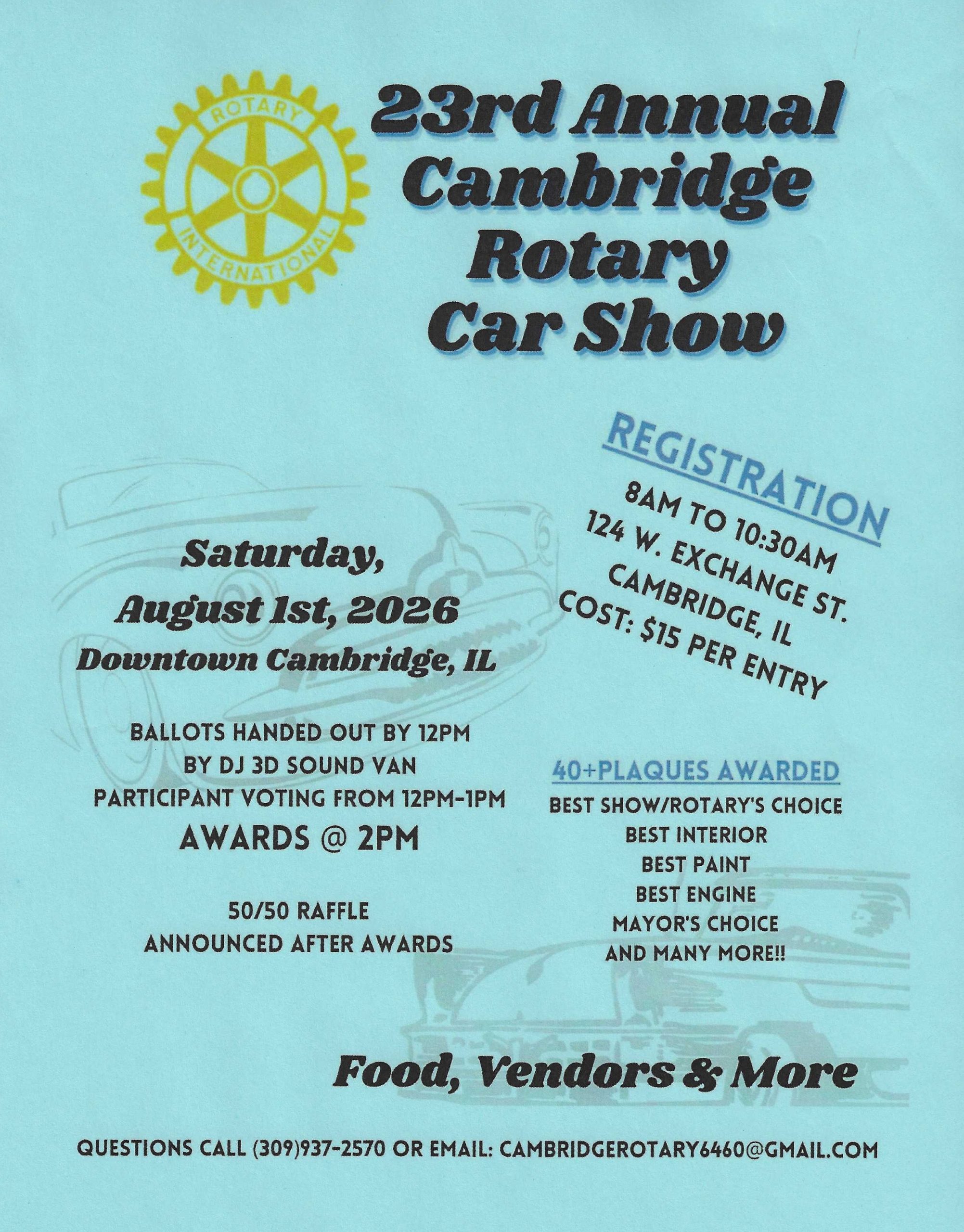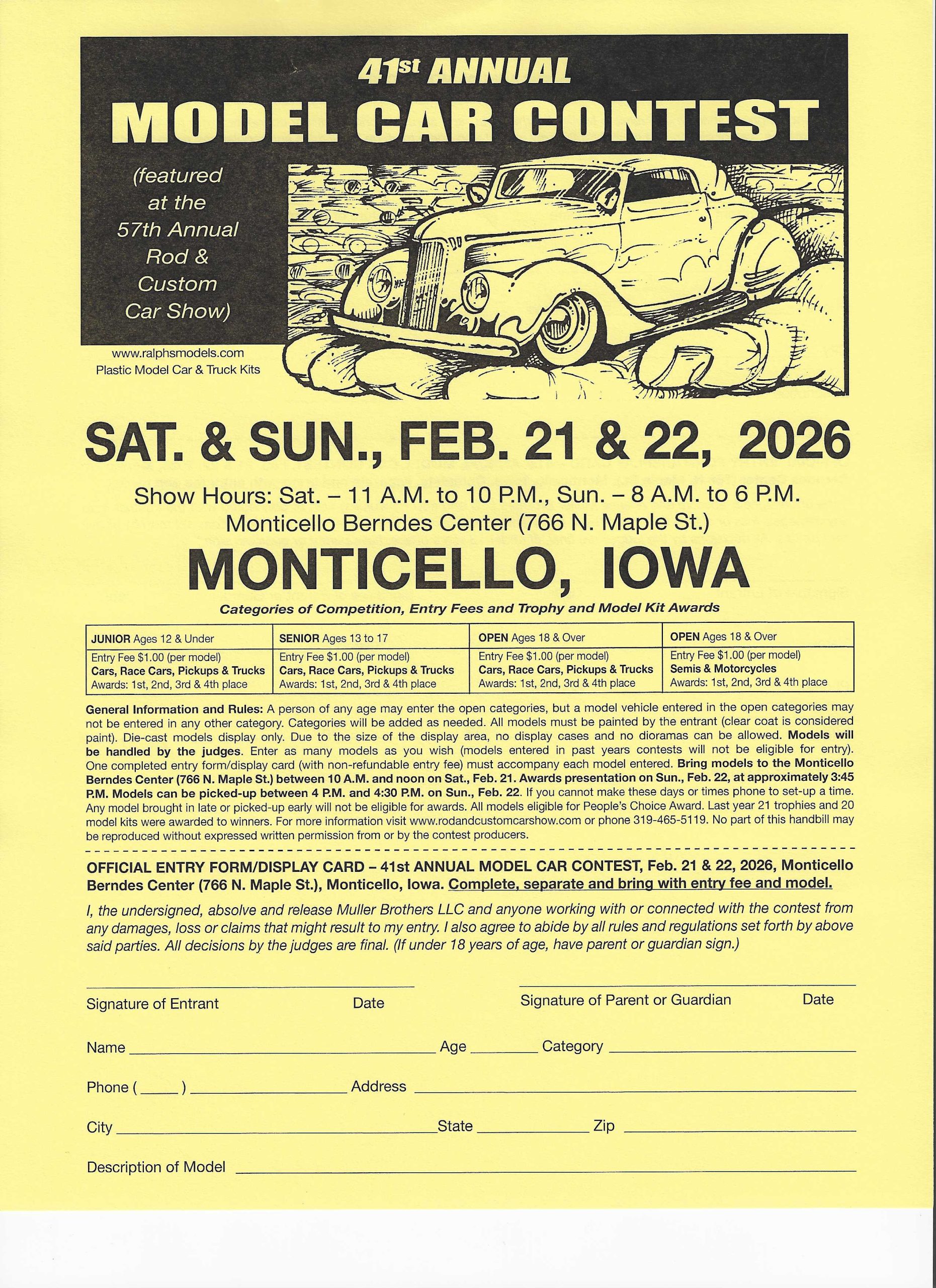Top 40, Best of Show, Food, 50/50 Raffle, Door Prizes