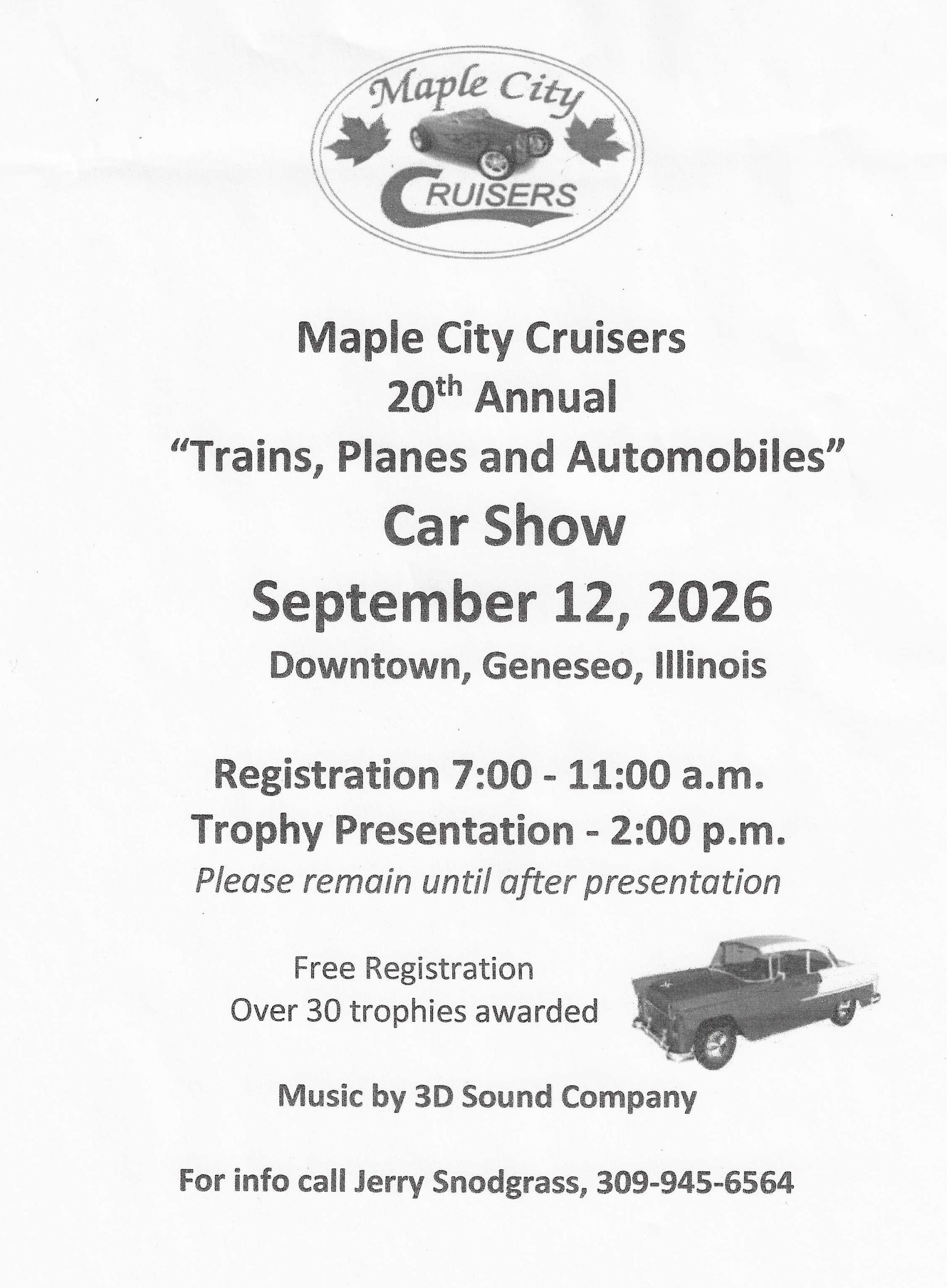 If you have a car show event you would like to have posted please send all the information to: tsaelens1@gmail.com